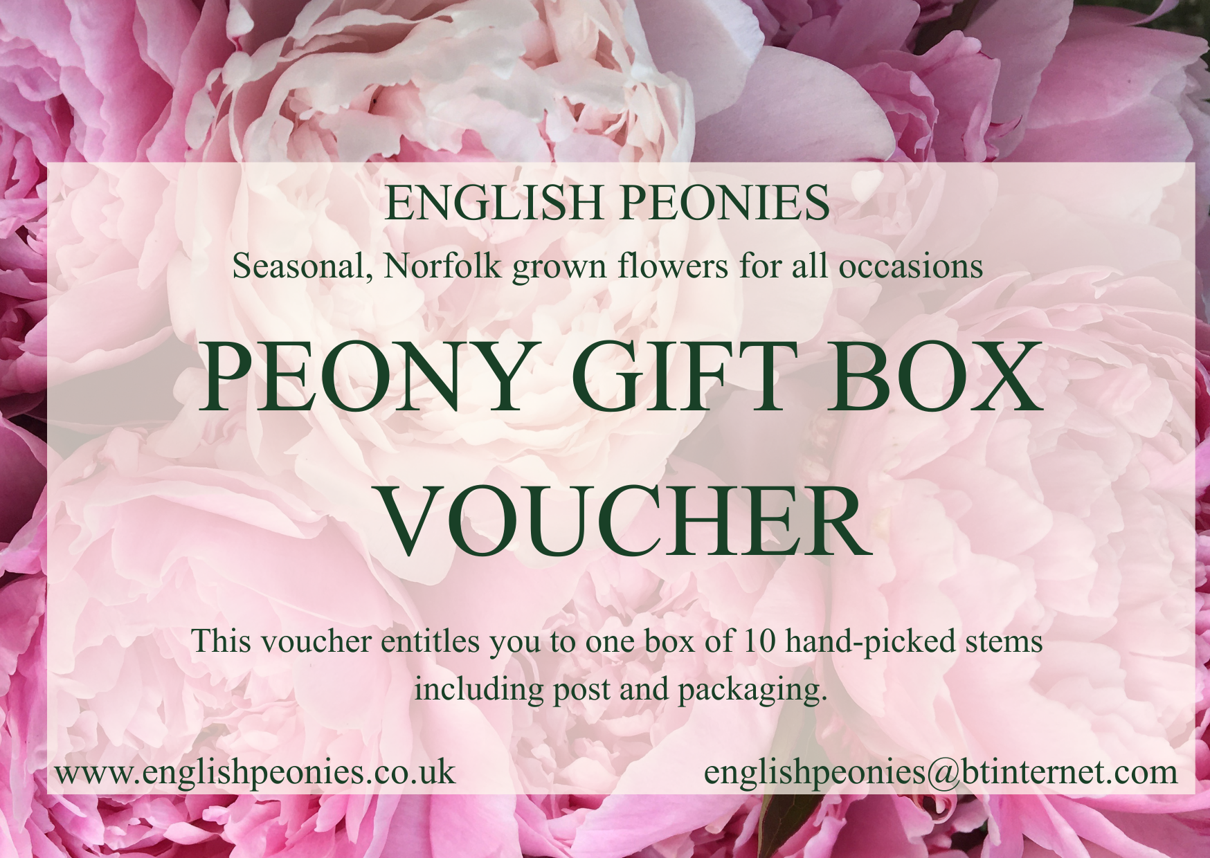We also offer specialist vouchers for workshops, Peony subscriptions and Peony bouquets.